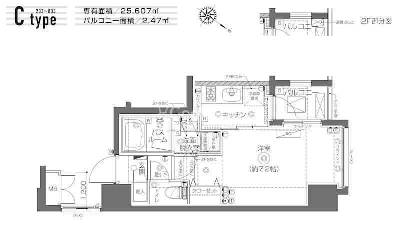 | 間取り | 1K | 専有面積 | 25.43㎡ |