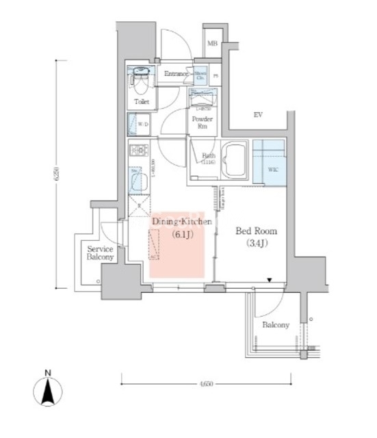 | 間取り | 1DK | 専有面積 | 25.46㎡ |