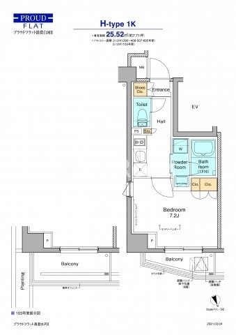 | 間取り | 1K | 専有面積 | 25.52㎡ |