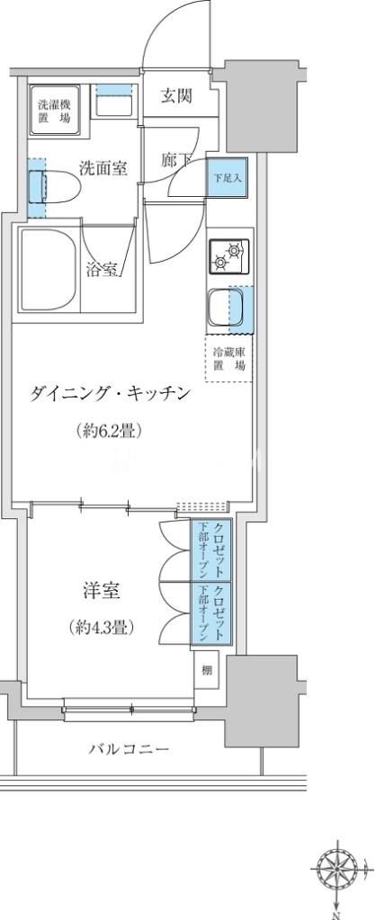 間取り | 1DK | 専有面積 | 25㎡ |