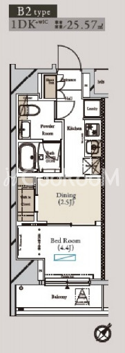 | 間取り | 1DK | 専有面積 | 25.57㎡ |