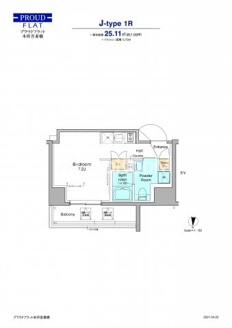 間取り | 1R | 専有面積 | 25.11㎡ |