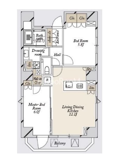 間取り | 2LDK | 専有面積 | 56.88㎡ |