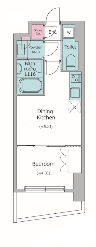| 間取り | 1DK | 専有面積 | 26.55㎡ |