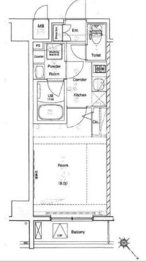 | 間取り | 1K | 専有面積 | 26.08㎡ |