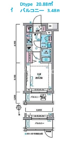 | 間取り | 1K | 専有面積 | 20.88㎡ |