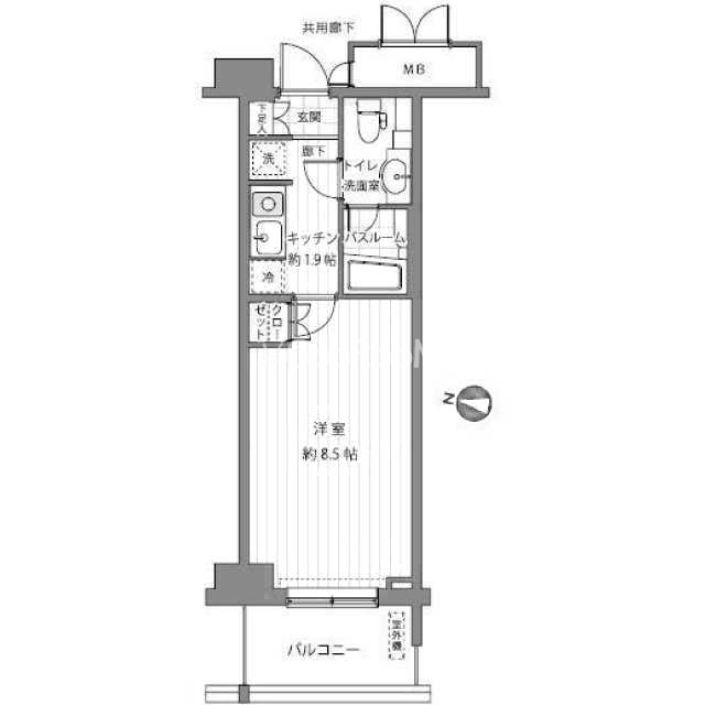 | 間取り | 1K | 専有面積 | 25.58㎡ |