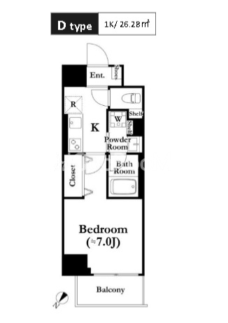 | 間取り | 1K | 専有面積 | 26.28㎡ |