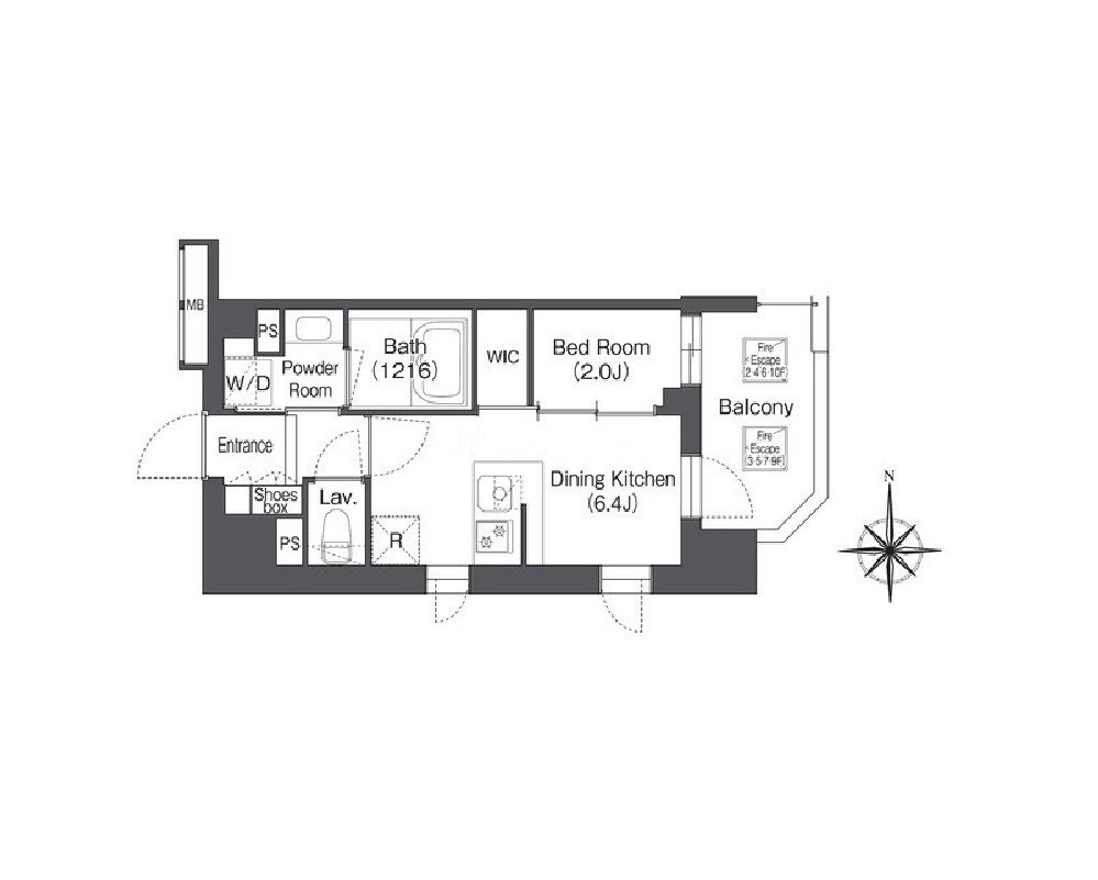 間取り | 1DK | 専有面積 | 25.08㎡ |