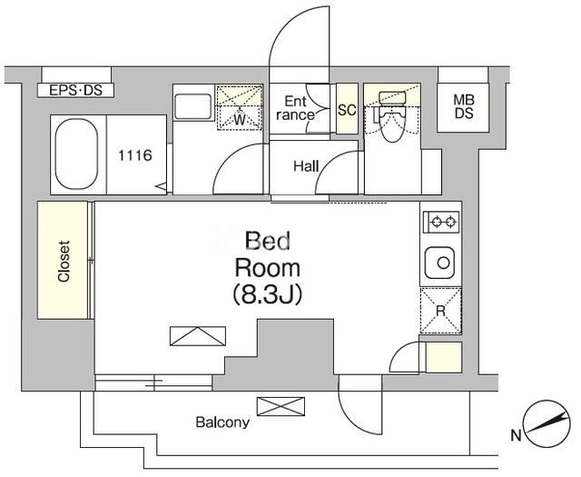 | 間取り | 1R | 専有面積 | 26.19㎡ |
