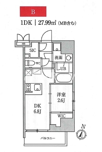 | 間取り | 1DK | 専有面積 | 27.99㎡ |