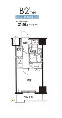 | 間取り | 1K | 専有面積 | 25.56㎡ |