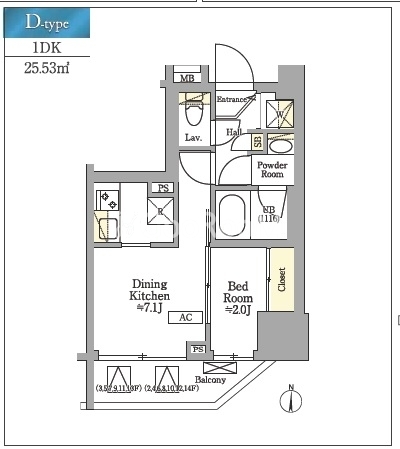 | 間取り | 1DK | 専有面積 | 25.53㎡ |
