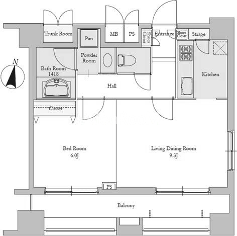 間取り | 1LDK | 専有面積 | 44.24㎡ |