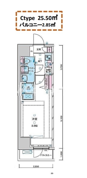| 間取り | 1K | 専有面積 | 25.5㎡ |