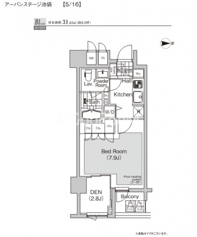 | 間取り | 1K | 専有面積 | 31.63㎡ |