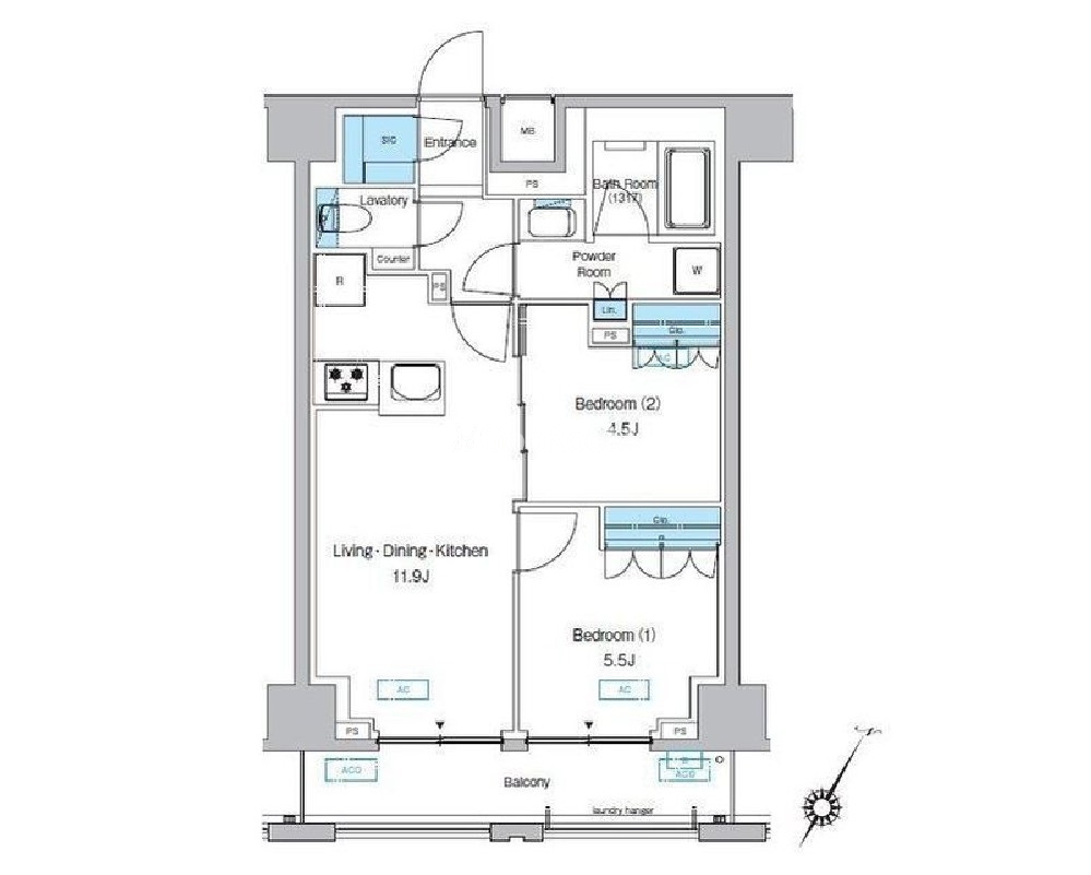 | 間取り | 2LDK | 専有面積 | 52.59㎡ |