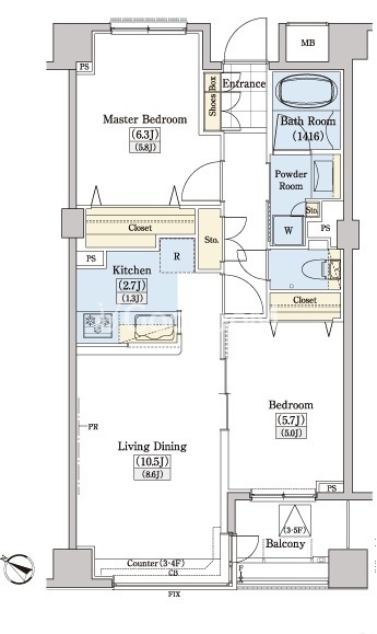 | 間取り | 2LDK | 専有面積 | 58.85㎡ |