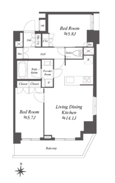 | 間取り | 2LDK | 専有面積 | 57.55㎡ |