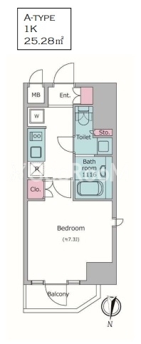 | 間取り | 1K | 専有面積 | 25.68㎡ |