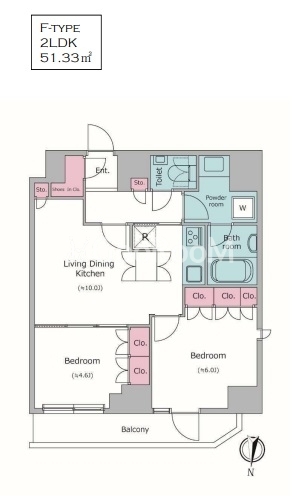| 間取り | 2LDK | 専有面積 | 51.33㎡ |