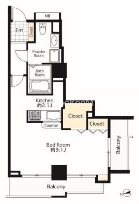 | 間取り | 1K | 専有面積 | 38.61㎡ |