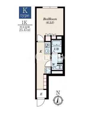 | 間取り | 1K | 専有面積 | 25.47㎡ |
