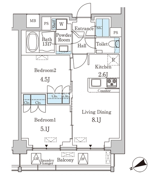 | 間取り | 2LDK | 専有面積 | 48.33㎡ |
