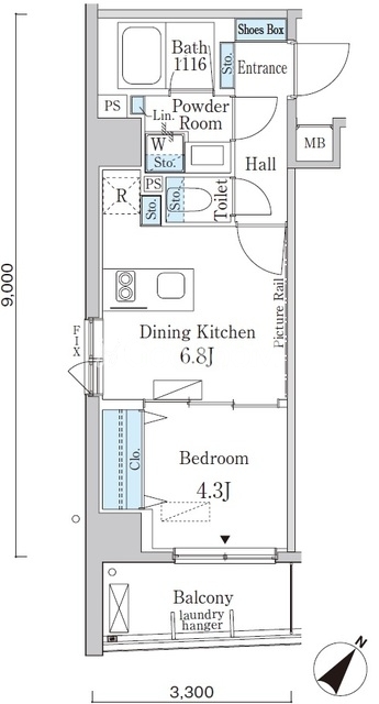 | 間取り | 1DK | 専有面積 | 29.7㎡ |