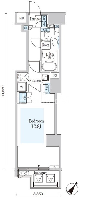 | 間取り | 1R | 専有面積 | 34.65㎡ |