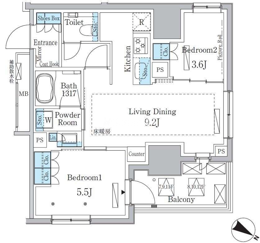 | 階数 | 10階 / 12階建 | 方位 | 北東 |