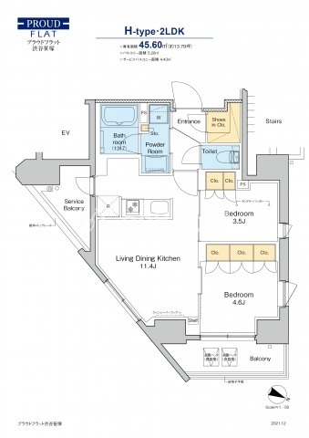 間取り | 2LDK | 専有面積 | 45.6㎡ |