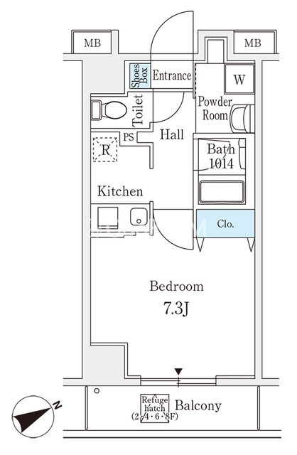 | 間取り | 1K | 専有面積 | 25.18㎡ |