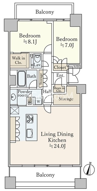 間取り | 2LDK | 専有面積 | 92.72㎡ |