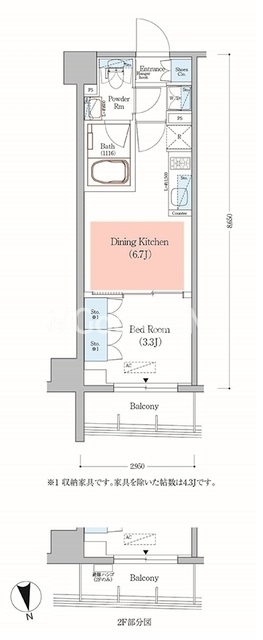 | 間取り | 1DK | 専有面積 | 25.51㎡ |