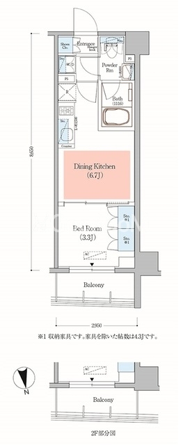 | 間取り | 1DK | 専有面積 | 25.51㎡ |