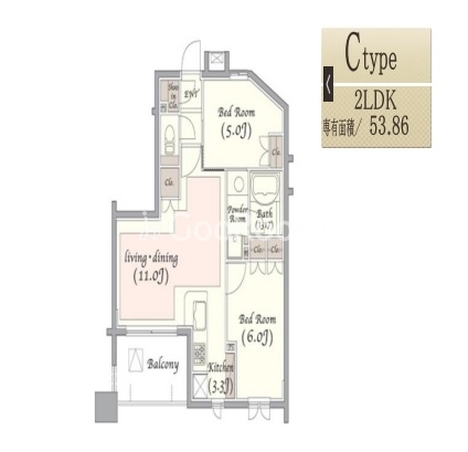 | 間取り | 2LDK | 専有面積 | 53.86㎡ |