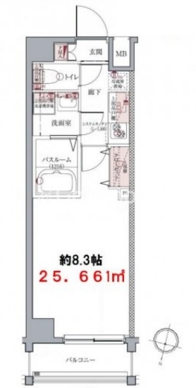 | 間取り | 1K | 専有面積 | 25.66㎡ |