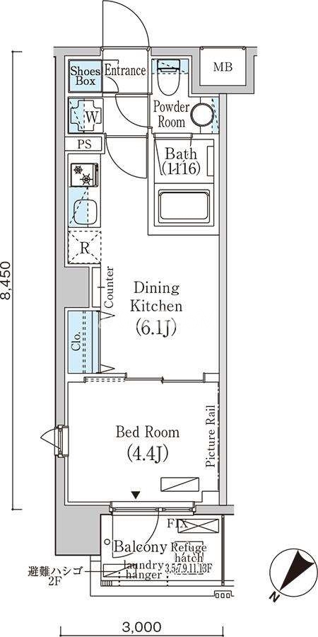 | 間取り | 1DK | 専有面積 | 25.35㎡ |