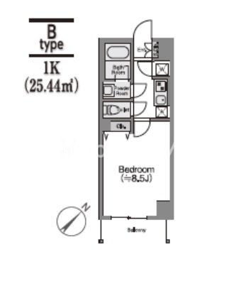 | 間取り | 1K | 専有面積 | 25.44㎡ |