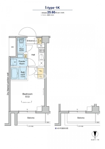 | 間取り | 1K | 専有面積 | 25.6㎡ |
