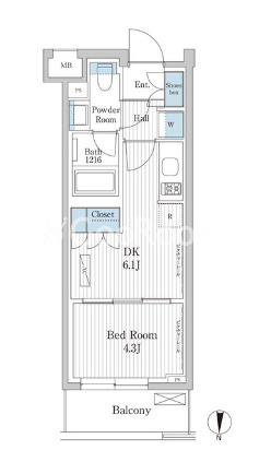 | 間取り | 1DK | 専有面積 | 26.66㎡ |