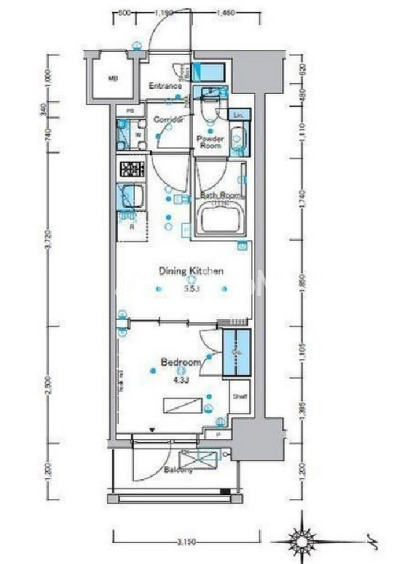 | 間取り | 1K | 専有面積 | 25.64㎡ |