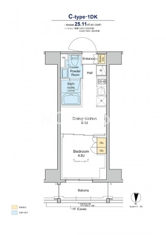 | 間取り | 1DK | 専有面積 | 25.11㎡ |