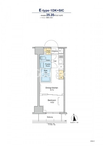 | 間取り | 1DK | 専有面積 | 25.2㎡ |