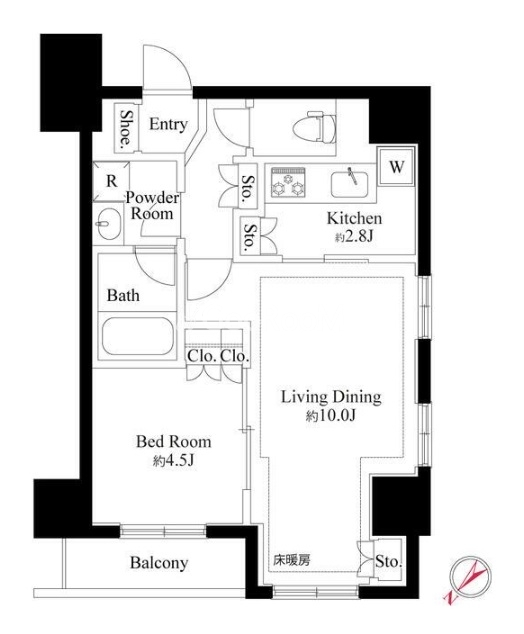| 敷金/礼金 | 1.0ヶ月 / 0.0ヶ月 | 方位 | 北西 |