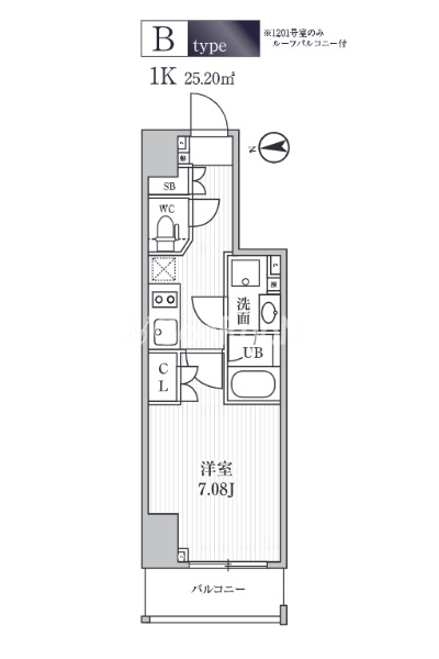 | 間取り | 1K | 専有面積 | 25.68㎡ |