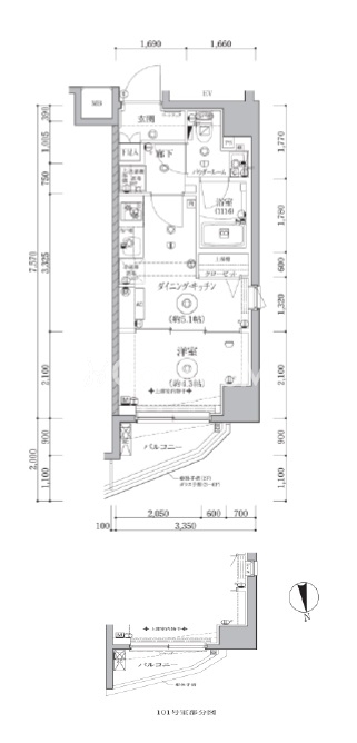 | 間取り | 1DK | 専有面積 | 25.35㎡ |