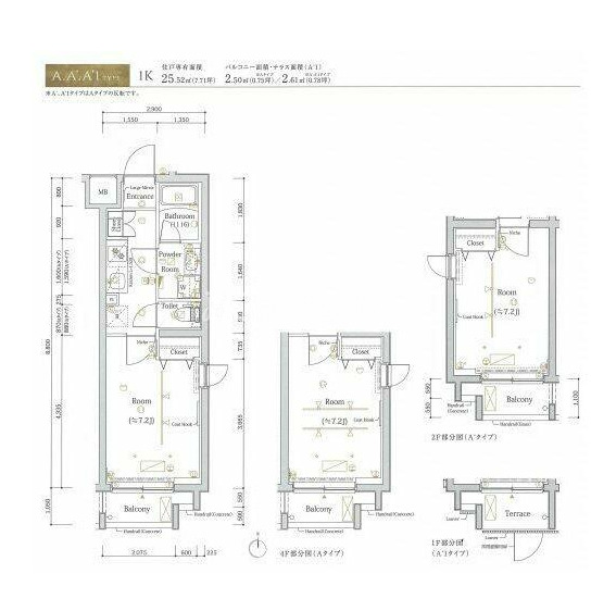 | 間取り | 1K | 専有面積 | 25.52㎡ |