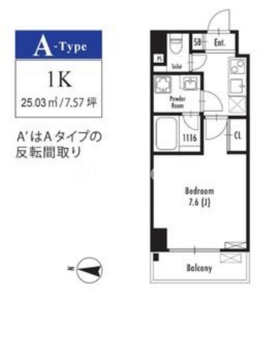 | 間取り | 1K | 専有面積 | 25.03㎡ |